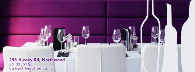 “Purple is not the color of the neigbourhood" will stick in my mind as the moment when I realized the extent of the earthquake that Sergiu and I had generated in Christchurch's most conservative neighborhood when Jagz of Styx Mill turned into The Option Bistro & Wines.